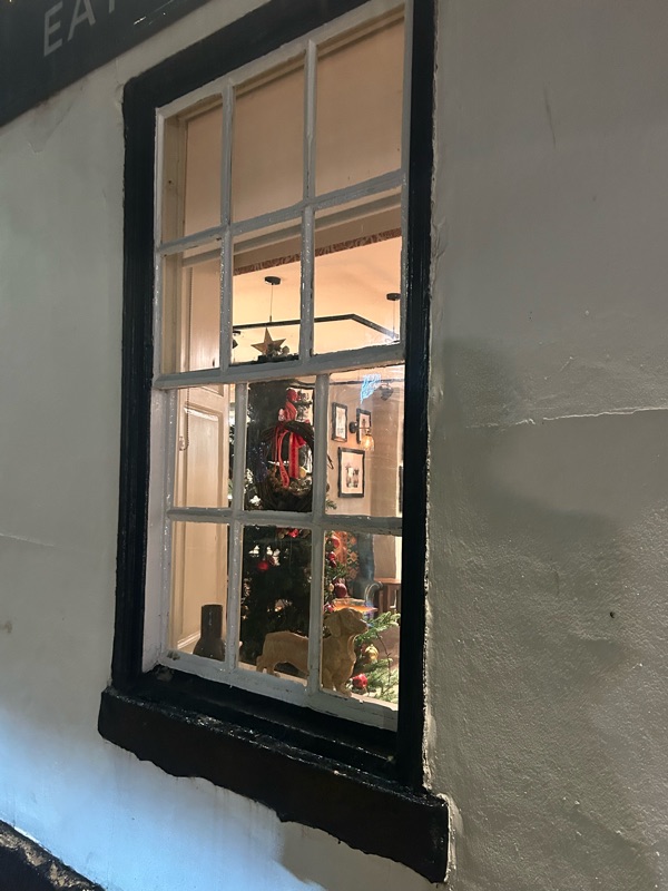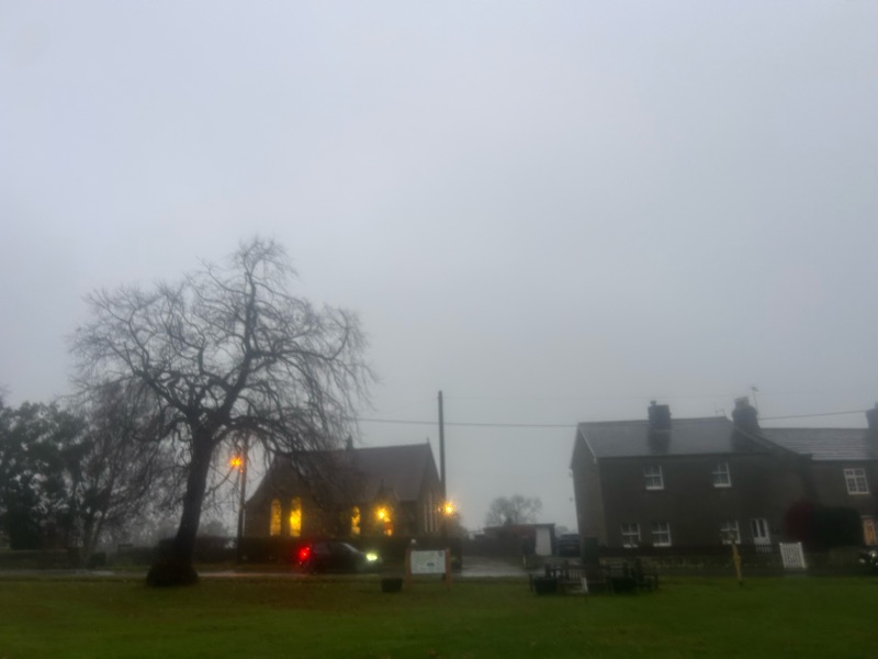 It was perhaps fitting we met on a really dark and dreary afternoon outside. I love the picture above of the light shining out of the chapel onto the village green.