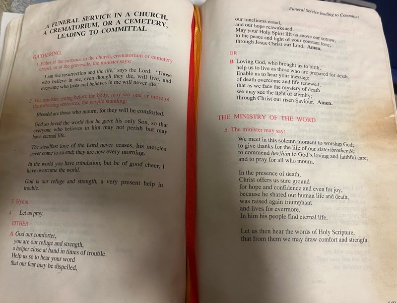 My service book which I received as an ordination present from the then Harpenden Circuit in 1999, is its most grubby in the funeral pages. I’ve taken a lot of them. David Dunn Wilson also told us students at Hartley to always preach the Gospel at a funeral.