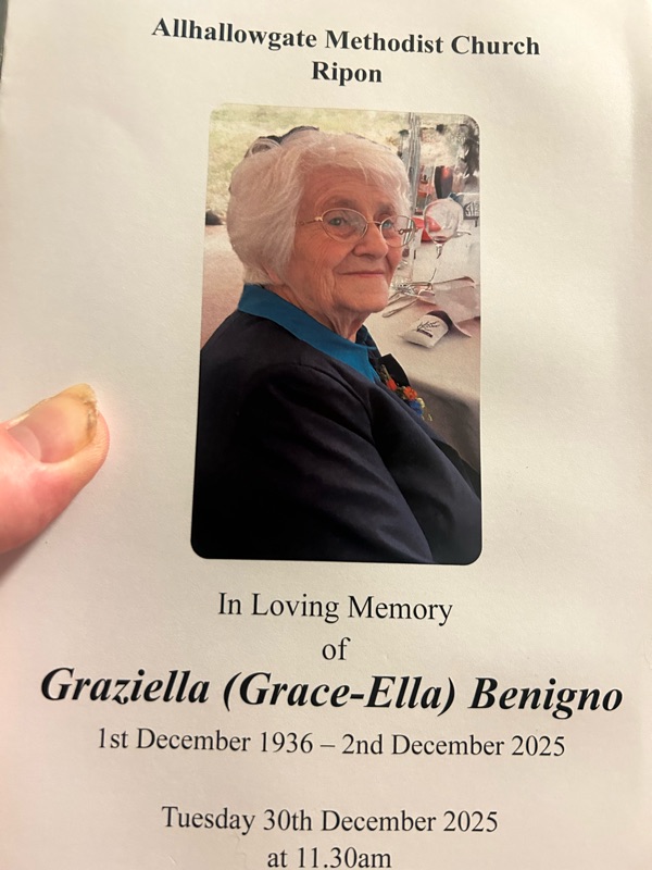 This afternoon I met another family to plan a funeral for 12 January. I heard of two other people in our mission area who have passed on, one after fighting cancer very bravely, a dear soul who played the organ at our Ellington chapel and ran a catering business which catered for funerals - and the other living a long life. She was one of the founder members of our Harrogate Road church. I also have a funeral on 8 January and the widow is worrying there’s a snow bomb forecast that day.