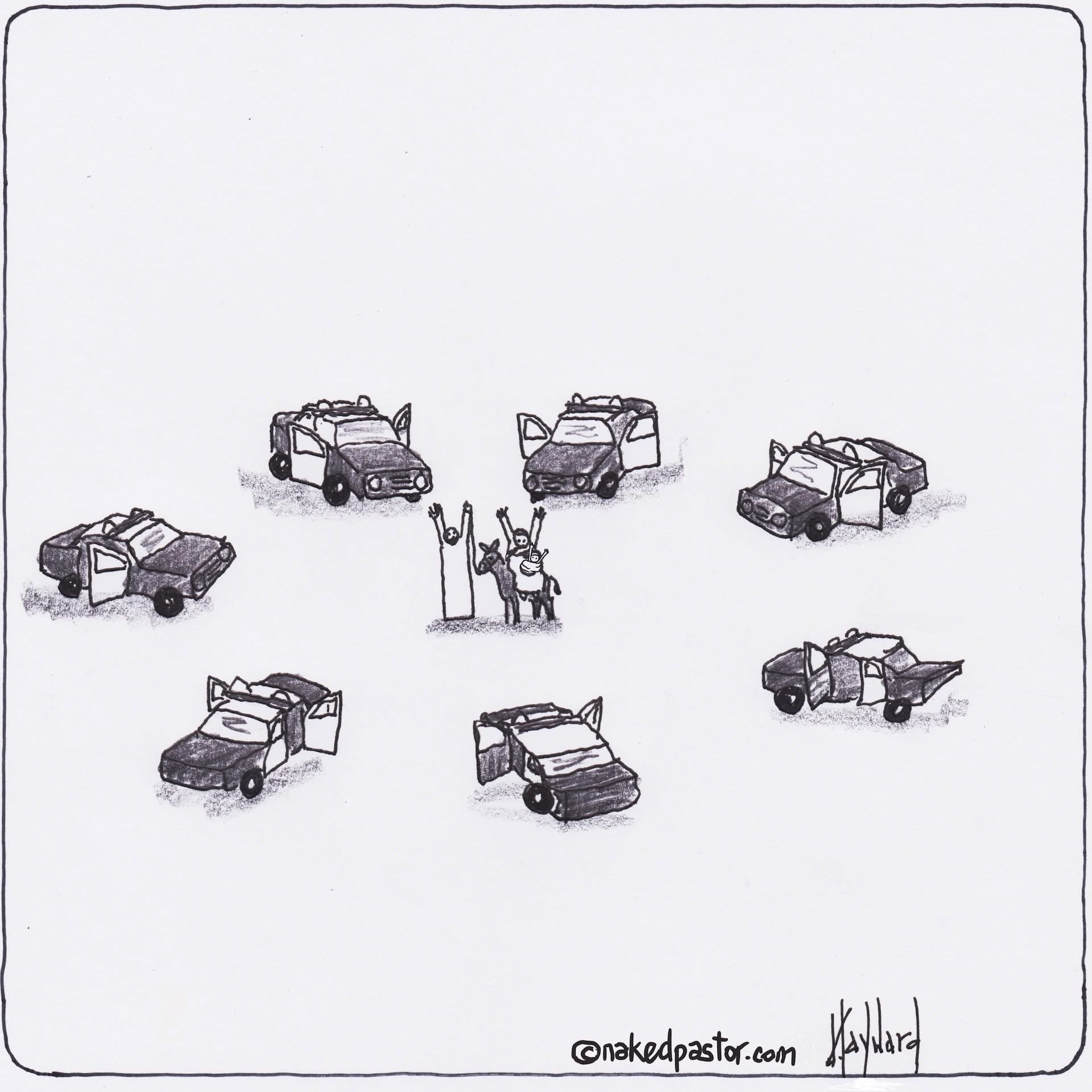 We live Christmas and all are included. We say a special thank you in this season to those we never thank at other times, we try to look out for the lonely. And so on. Maybe in contrast to the larder and the safety of Egypt for the holy family the world today needs to look long and hard at its message. Maybe the naked pastor has it right (sadly) in his cartoon today…